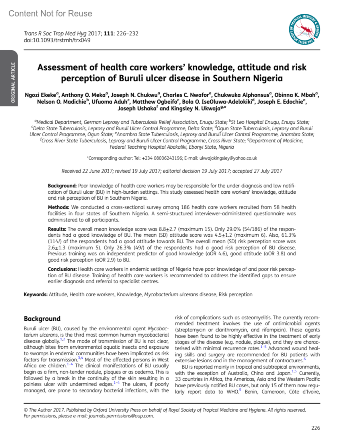 Transactions of the Royal Society of Tropical Medicine and Hygiene 111(5):p 226-232, May 01, 2017. | DOI: 10.1093/trstmh/trx049