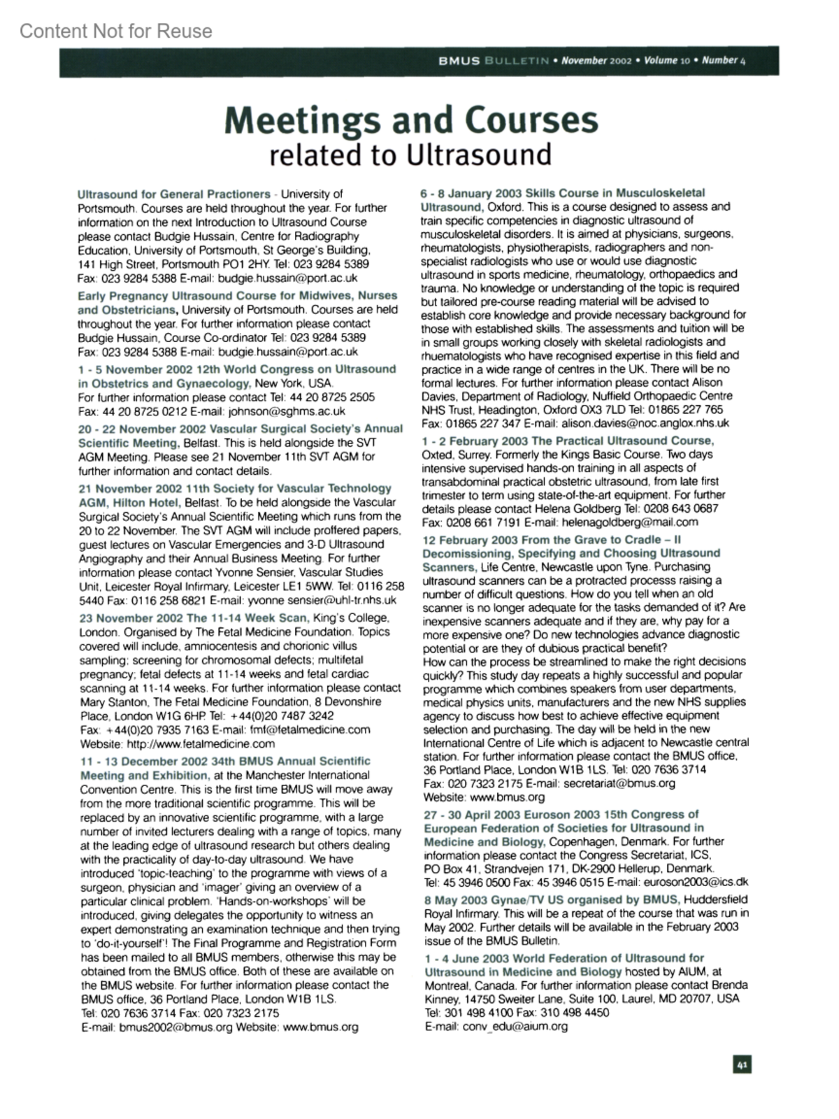 Meetings and Courses Related to UltrasoundUltrasound 10(4):p 41-42, November 2002. | DOI: 10.1177/1742271X0201000417Copyright © 2002 by SAGE Publications