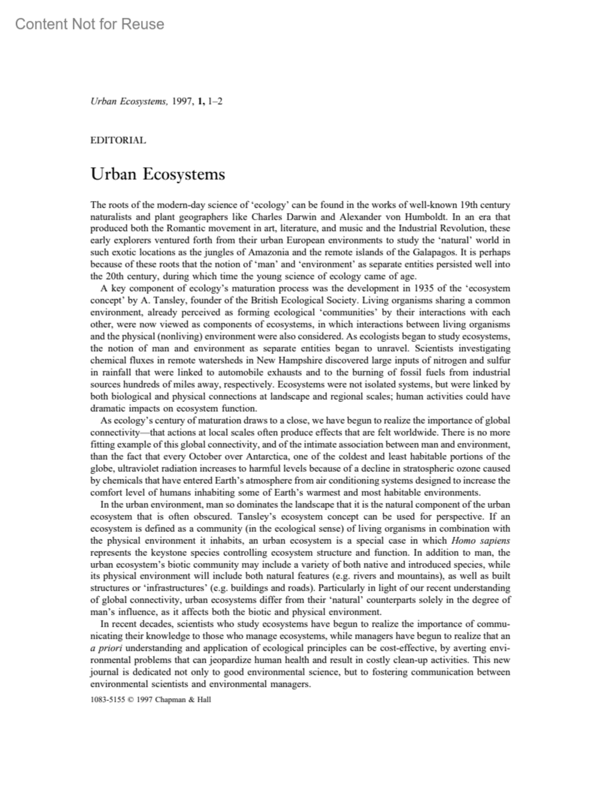 Urban Ecosystems 1(1):p 1-2, 1997.