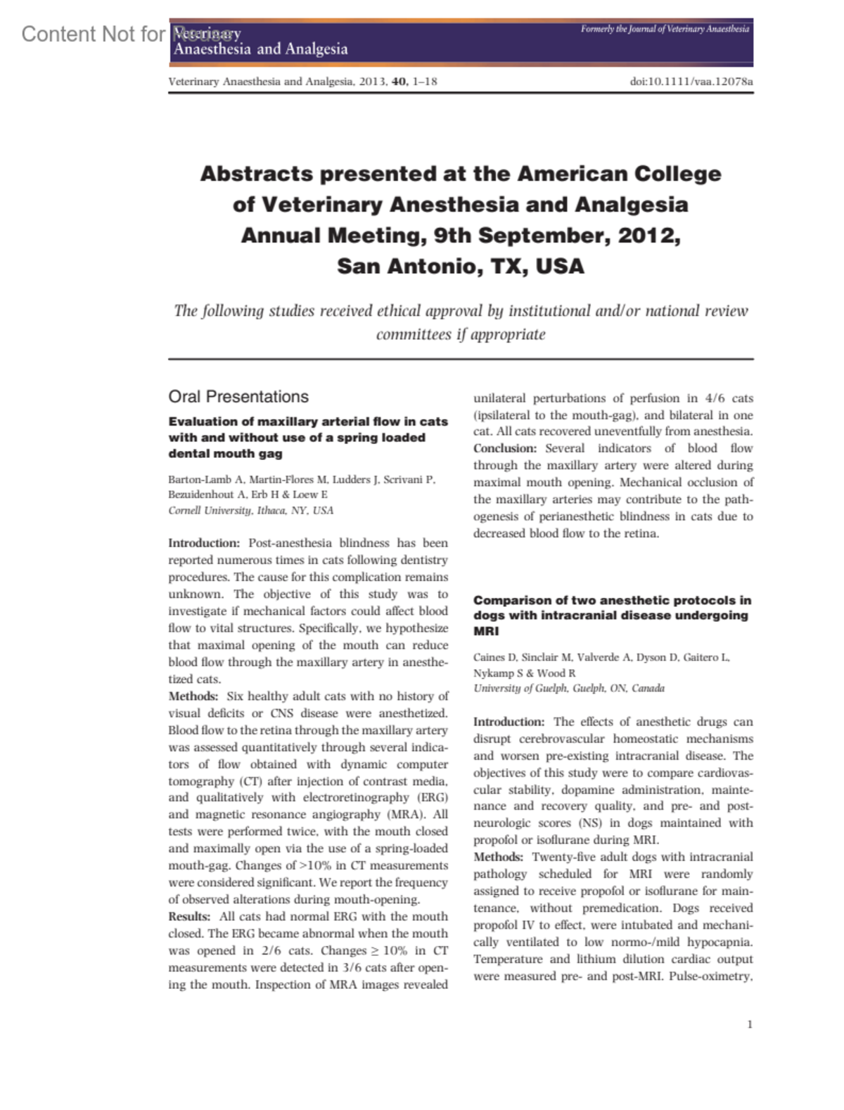 Veterinary Anaesthesia and Analgesia 40(6):p 1-2, November 2013.