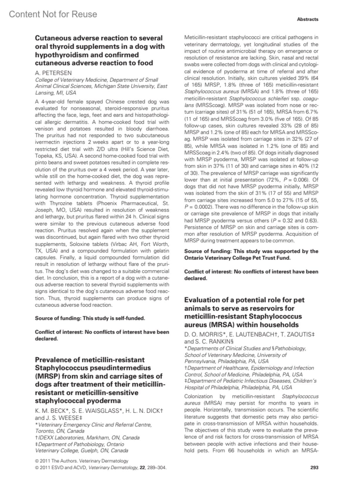 Veterinary Dermatology 22(3):p 293, June 2011.