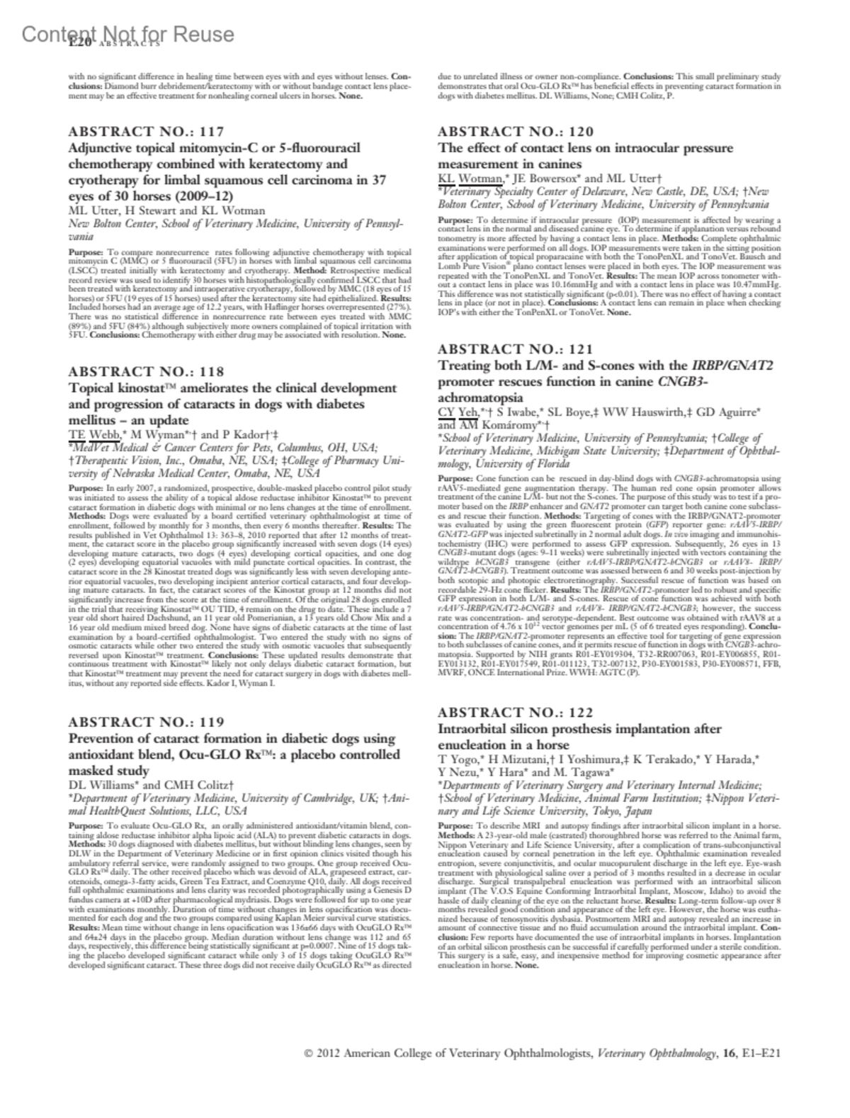 Veterinary Ophthalmology 16(1):p E20, January 2013.