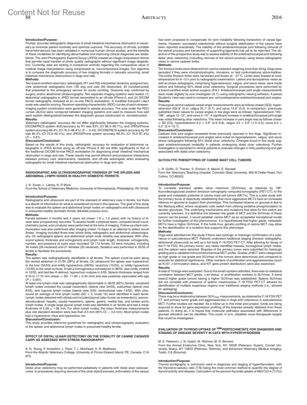 Veterinary Radiology and Ultrasound 57(1):p 88, January-February 2016.