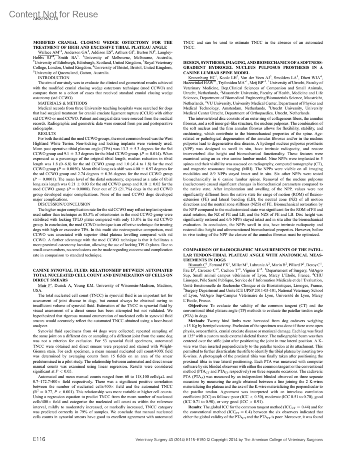 1University of Utrecht, Faculty of Veterinary Medicine, Dep.Clinical Sciences of Companion and Small Animals, Utrecht, Netherlands, 2Maastricht University, Faculty of Health, Medicine and Life Sciences, Department of Biomedical Engineering/Biomaterials Science, Maastricht, Netherlands, 3VU University, University Medical Center, Department of Physics and Medical Technology, Amsterdam, Netherlands, 4Utrecht University, University Medical Center Utrecht, Department of Orthopaedics, Utrecht, Netherlands.
