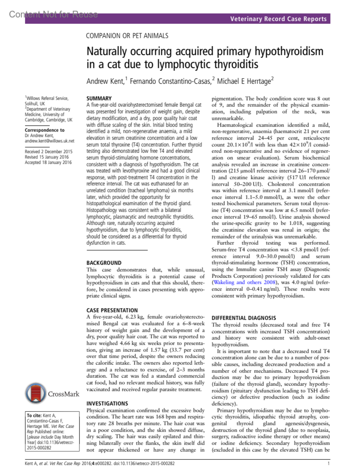 Veterinary Record Case Reports 4(1):p e000282, May 2016. | DOI: 10.1136/vetreccr-2015-000282