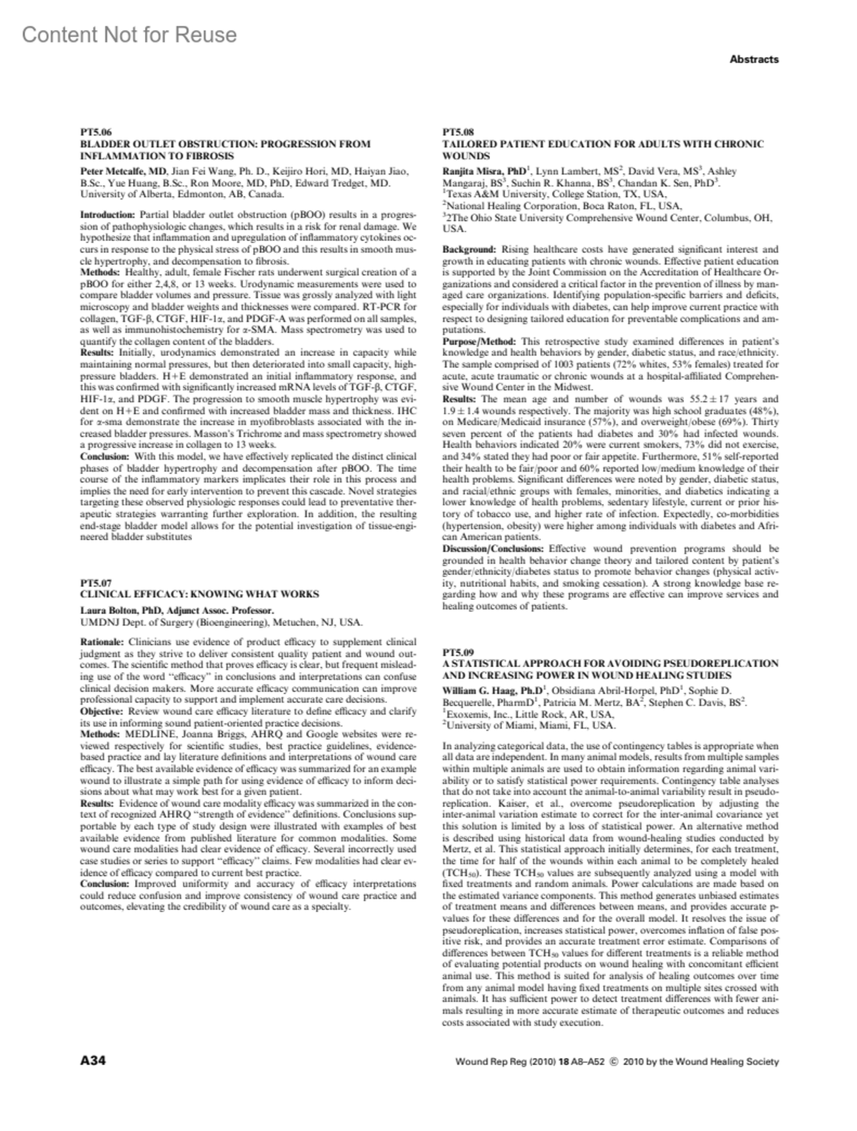 Wound Repair and Regeneration 18(2):p A34, March-April 2010.