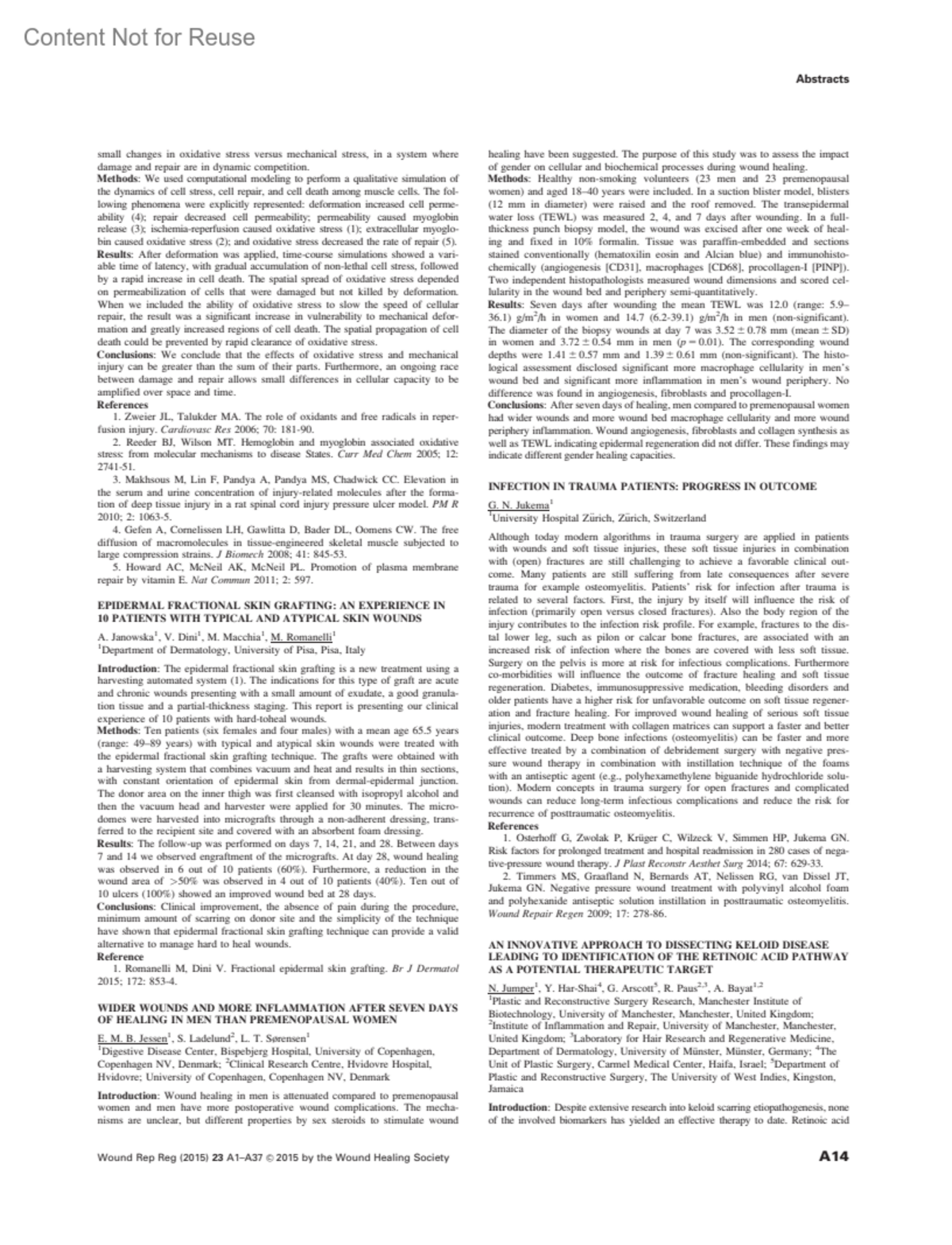 Wound Repair and Regeneration 23(4):p A14, July-August 2015.
