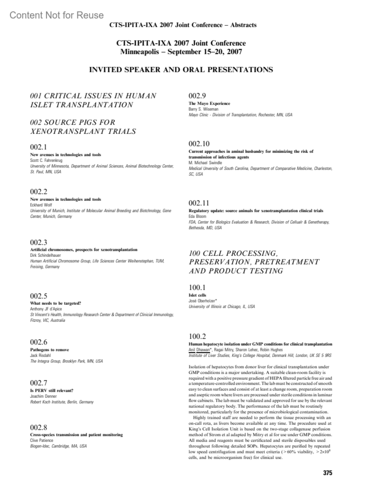 Xenotransplantation 14(5):p 381-382, September 2007.