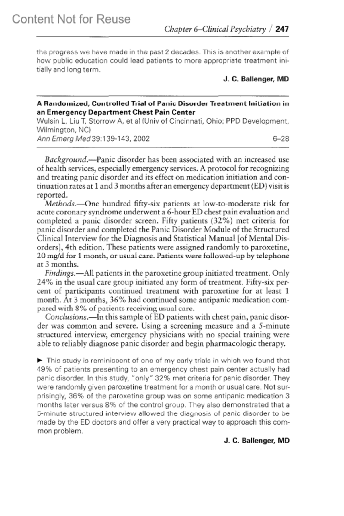 A Randomized, Controlled Trial of Panic Disorder Treatment Initiation in an Emergency Department Chest Pain Center