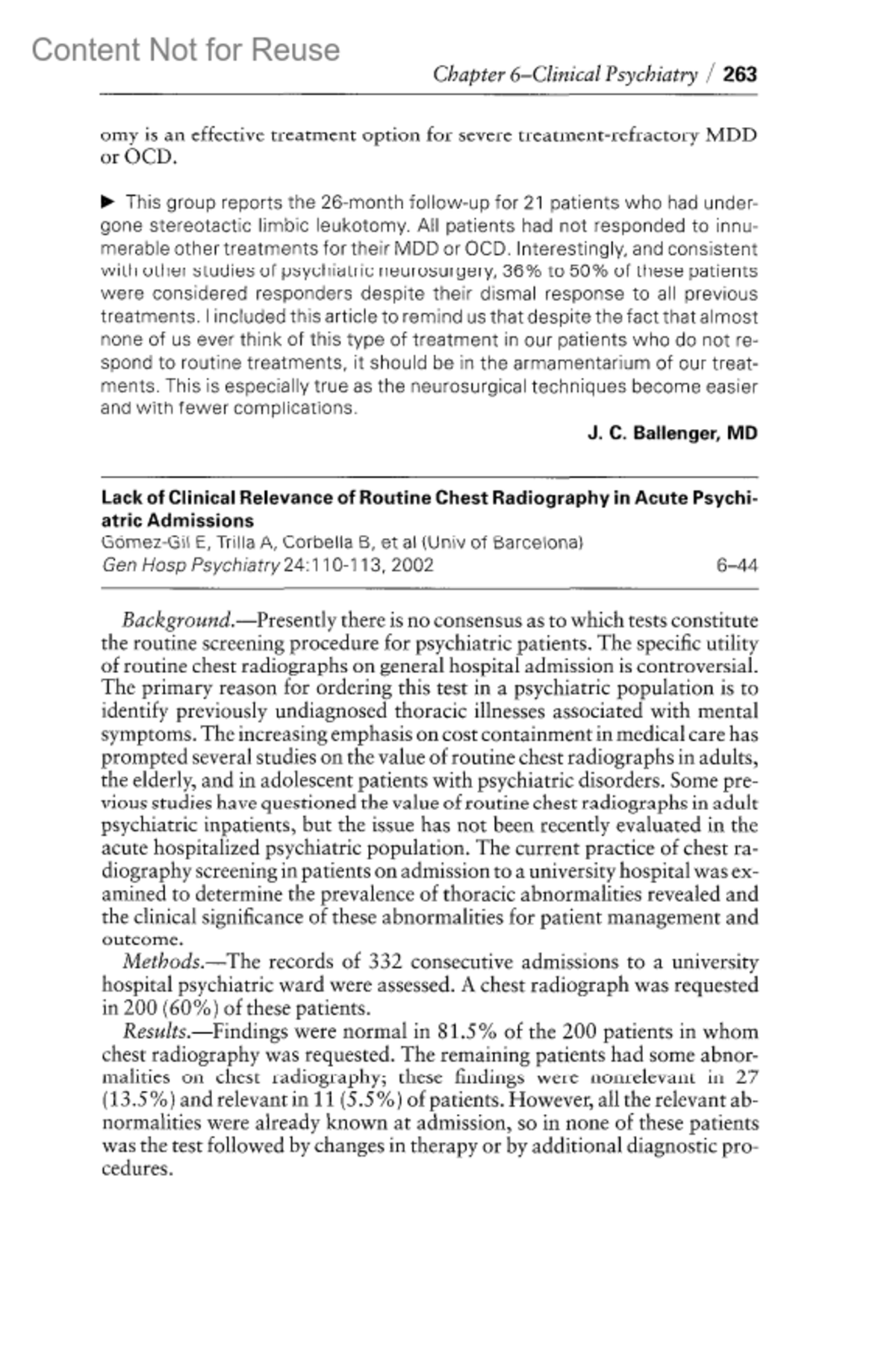 Lack of Clinical Relevance of Routine Chest Radiography in Acute Psychiatric Admissions