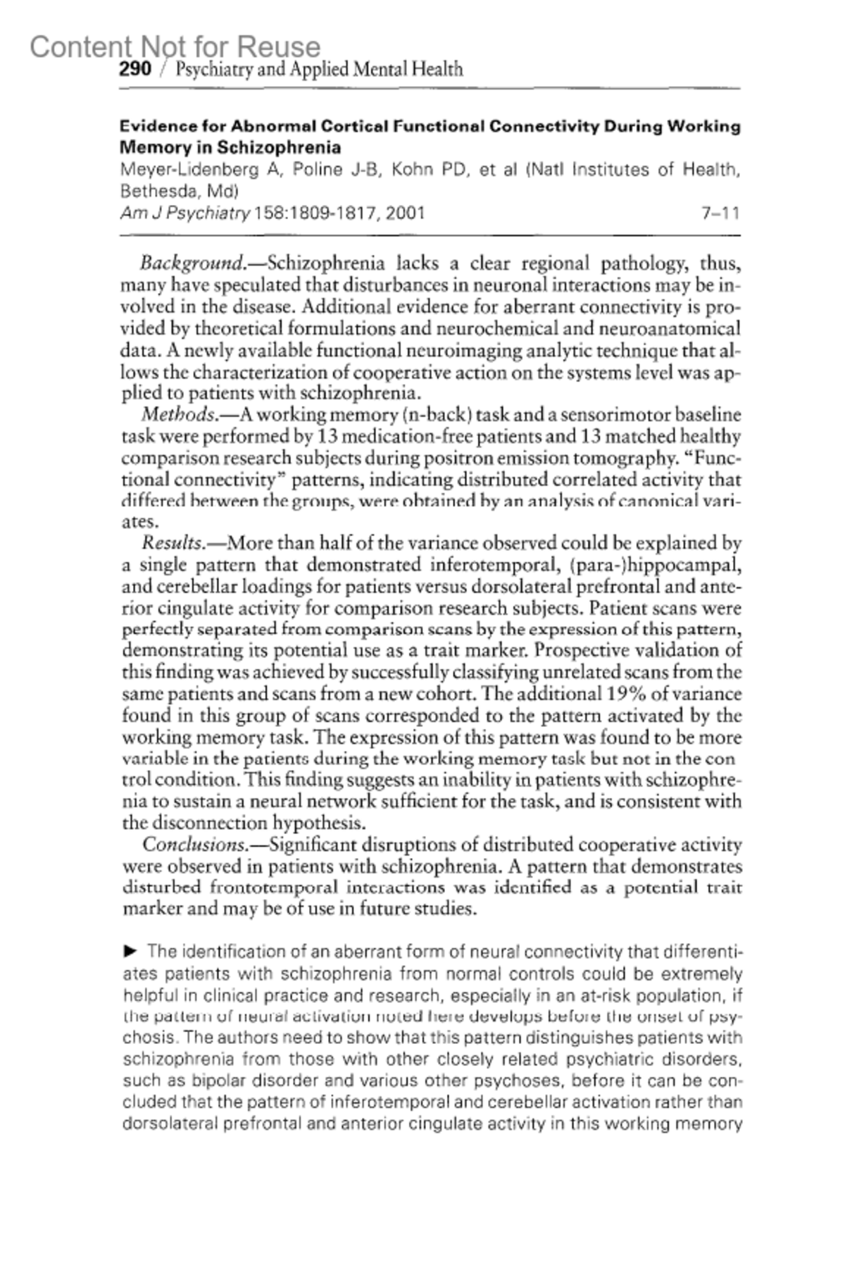 Evidence for Abnormal Cortical Functional Connectivity During Working Memory in Schizophrenia