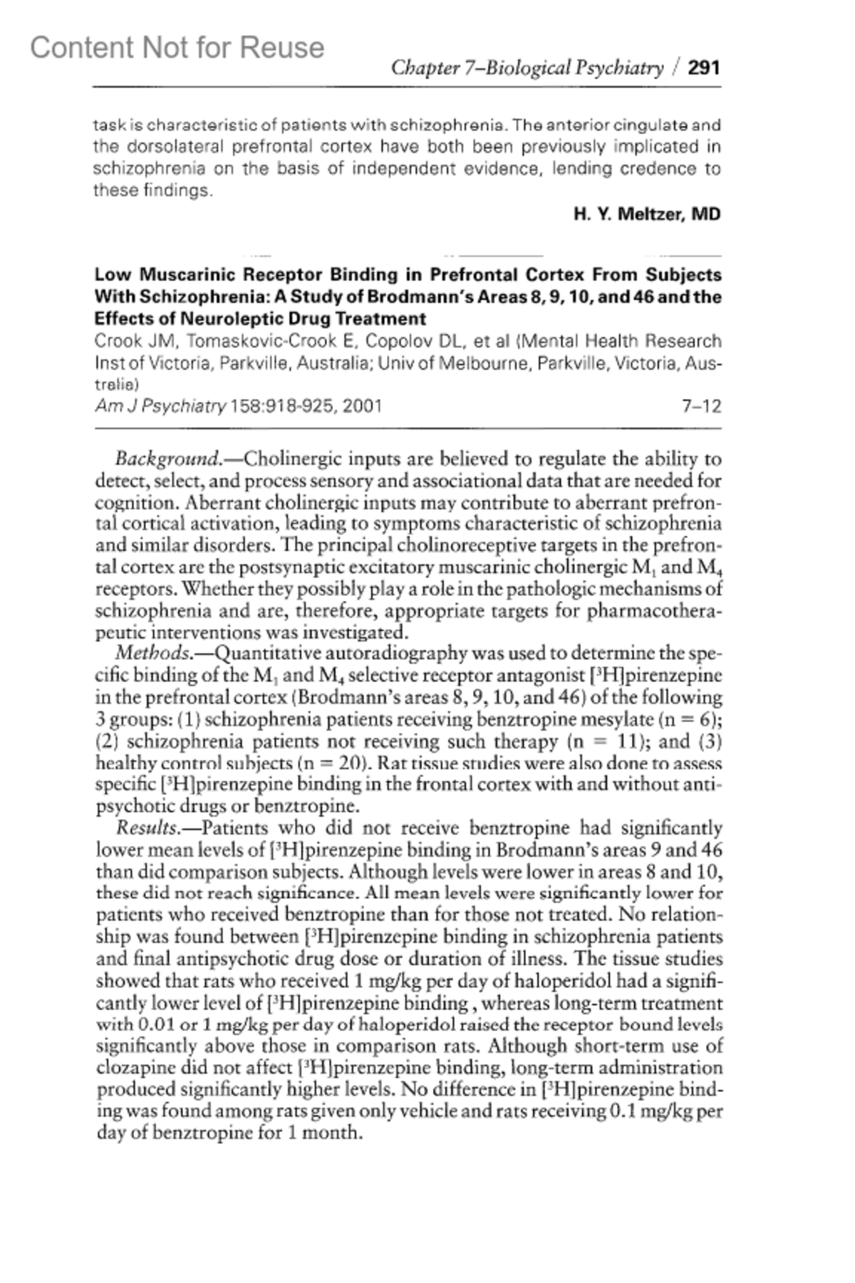 Low Muscarinic Receptor Binding in Prefrontal Cortex From Subjects With Schizophrenia: A Study of Brodmann's Areas 8, 9, 10, and 46 and the Effects of Neuroleptic Drug Treatment
