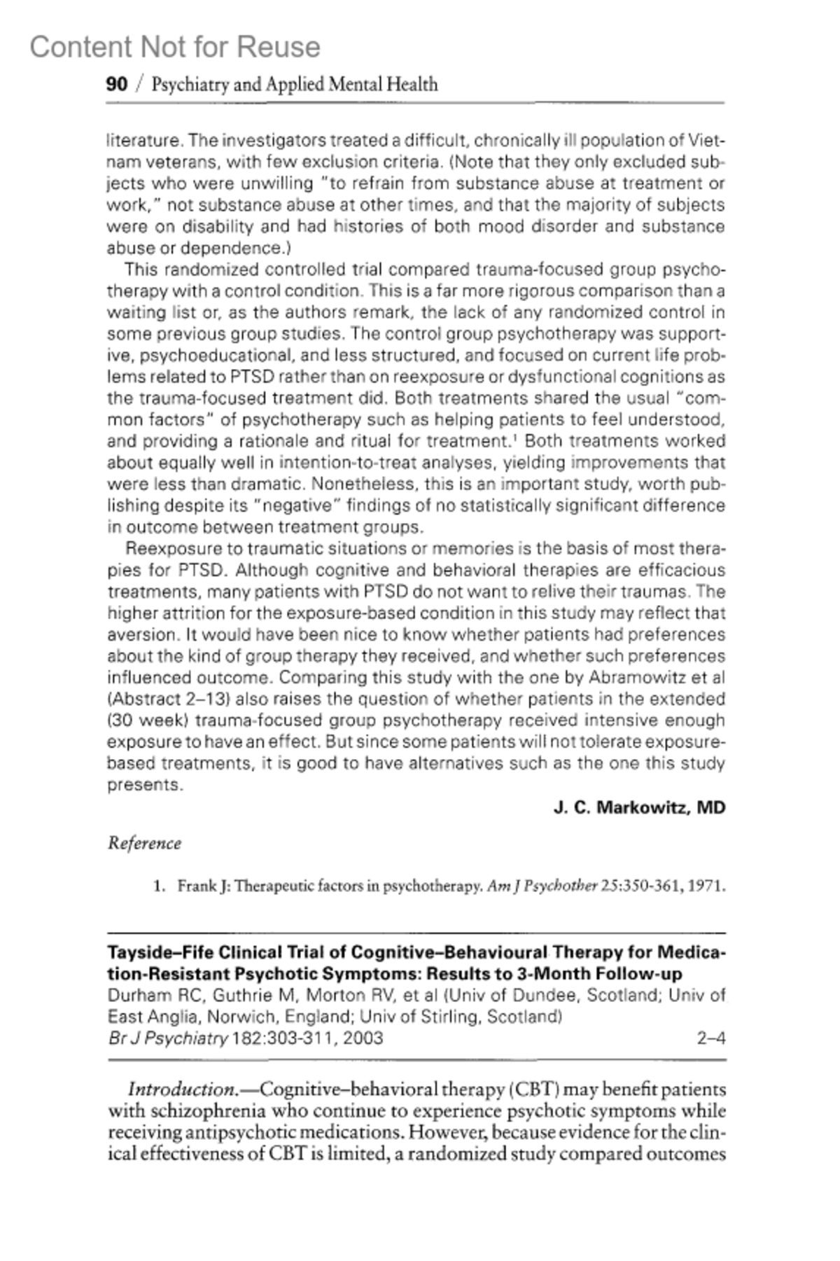 Tayside-Fife Clinical Trial of Cognitive-Behavioural Therapy for Medication-Resistant Psychotic Symptoms: Results to 3-Month Follow-up