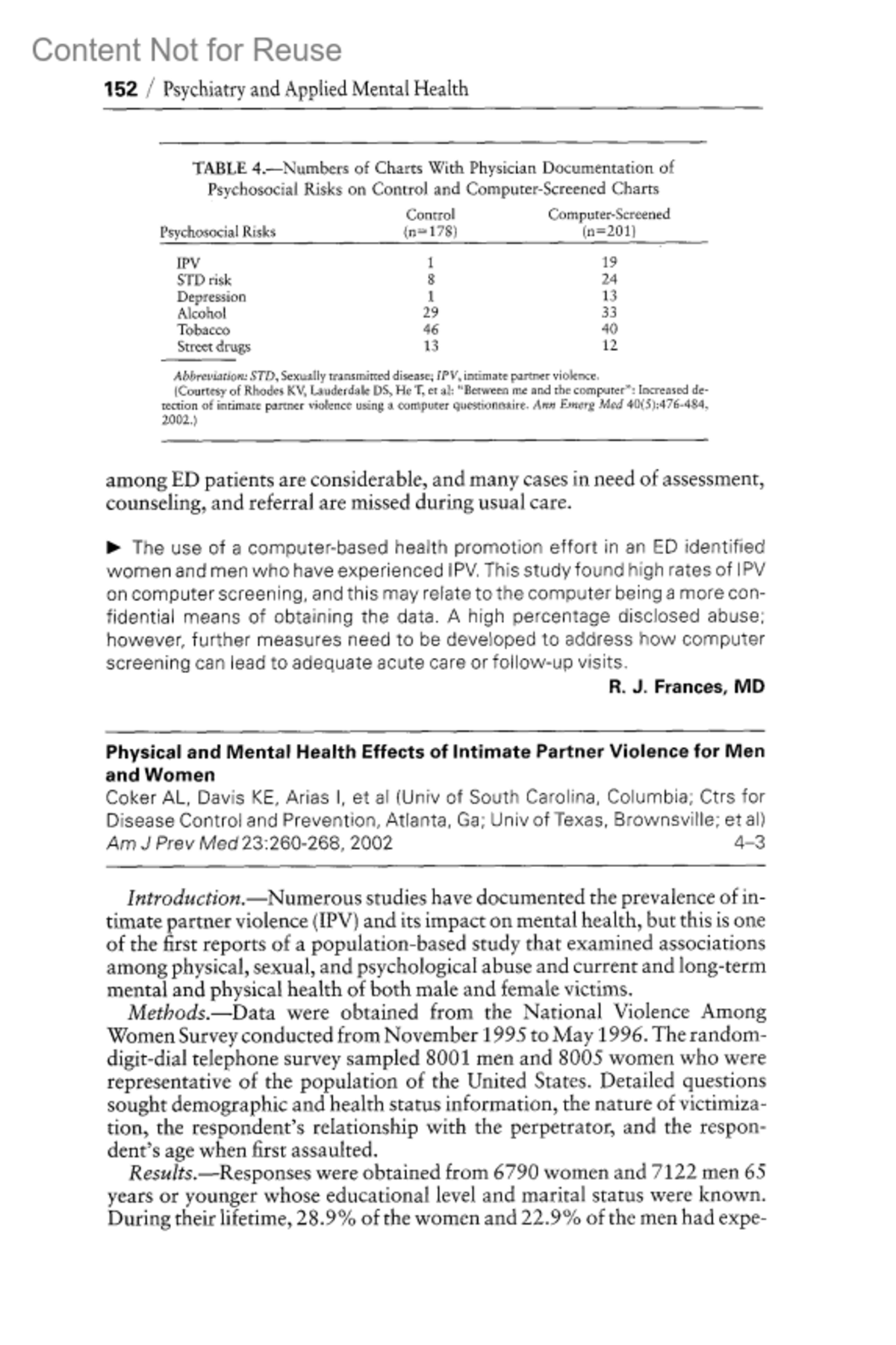 Physical and Mental Health Effects of Intimate Partner Violence for Men and Women