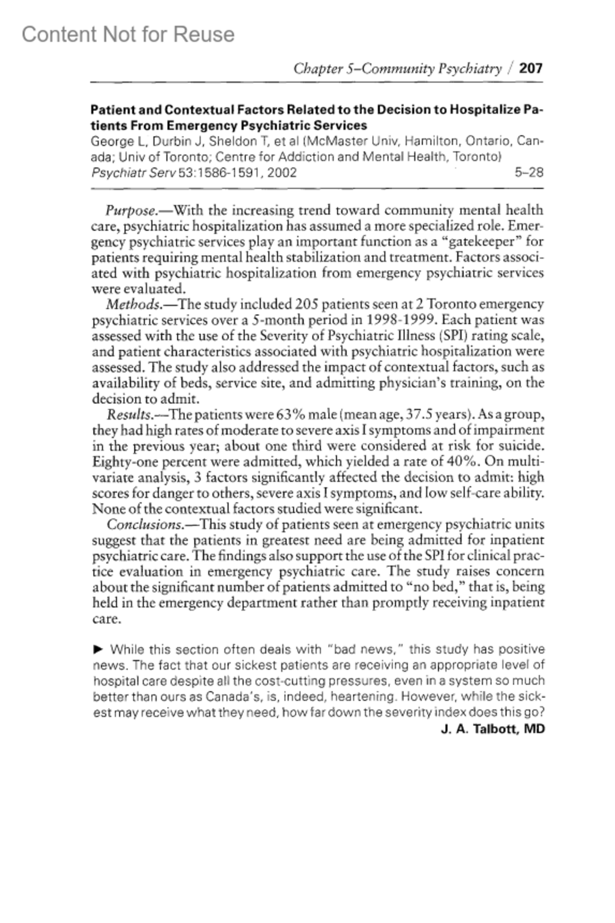 Patient and Contextual Factors Related to the Decision to Hospitalize Patients From Emergency Psychiatric Services