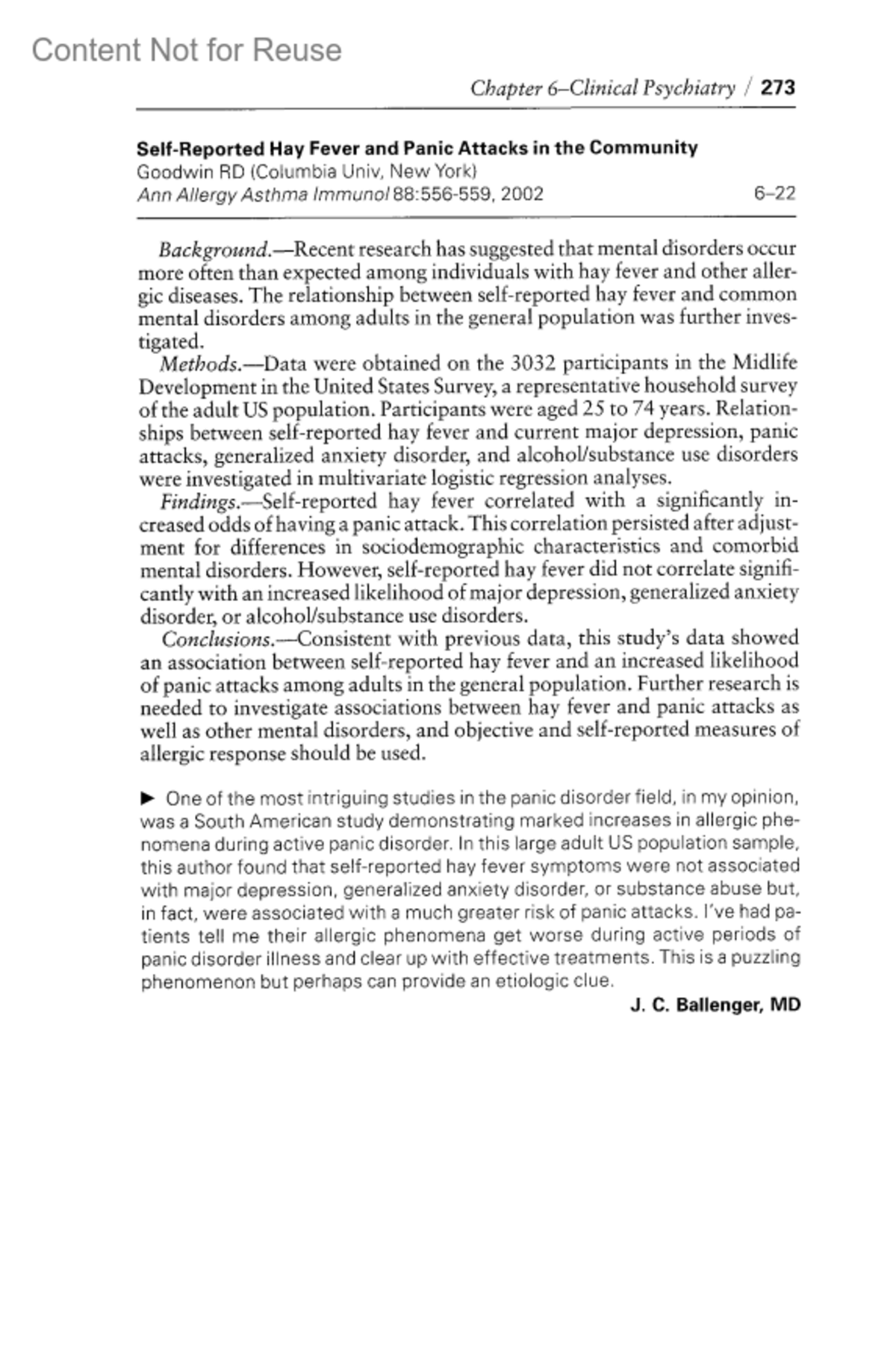 Self-Reported Hay Fever and Panic Attacks in the Community