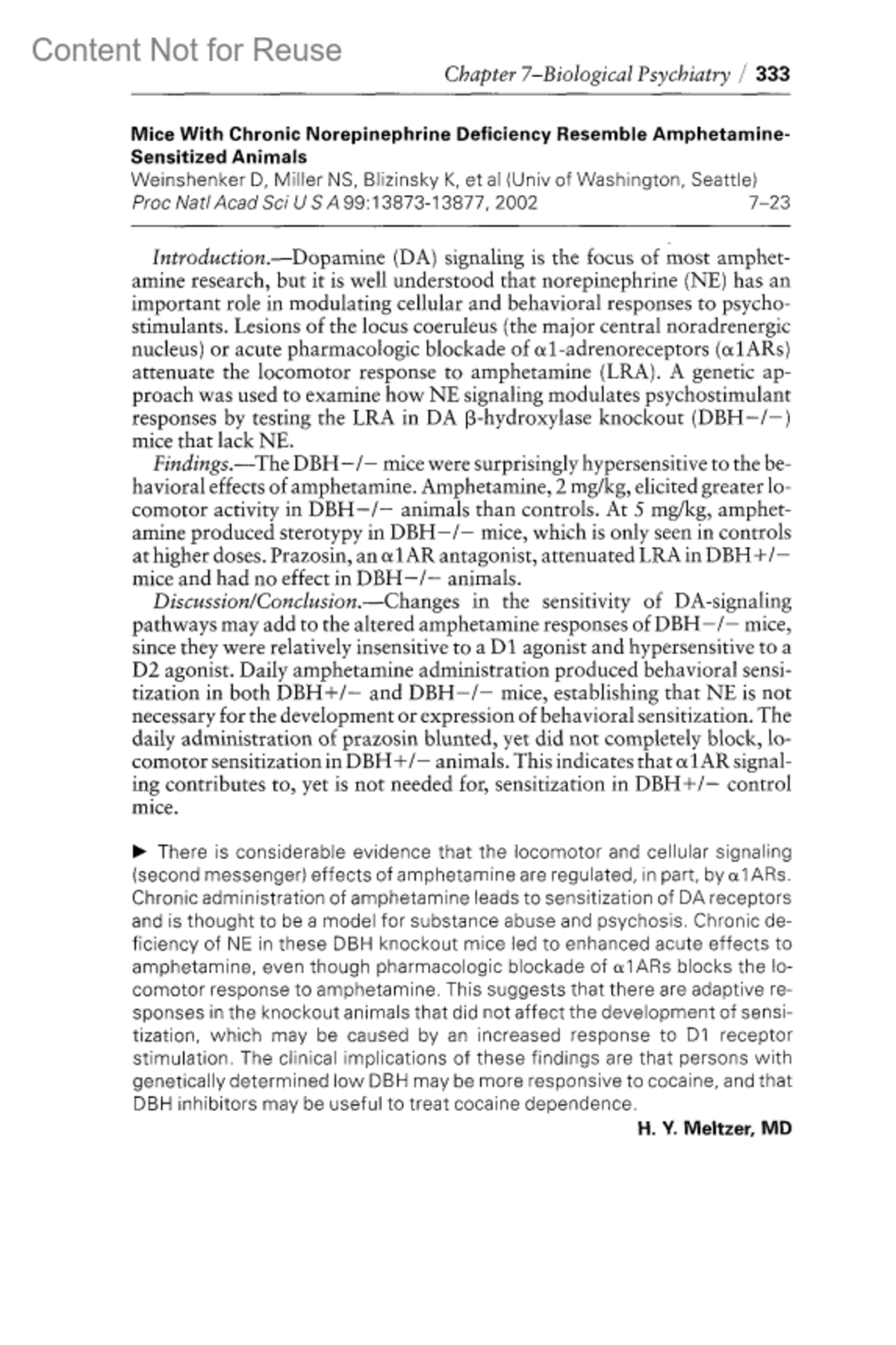 Mice With Chronic Norepinephrine Deficiency Resemble Amphetamine-Sensitized Animals