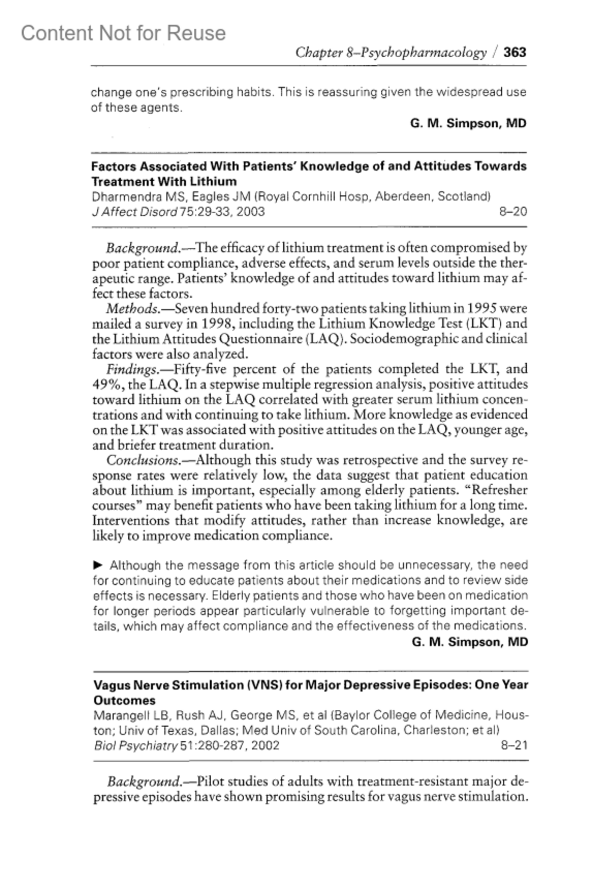 Factors Associated With Patients' Knowledge of and Attitudes Towards Treatment With Lithium