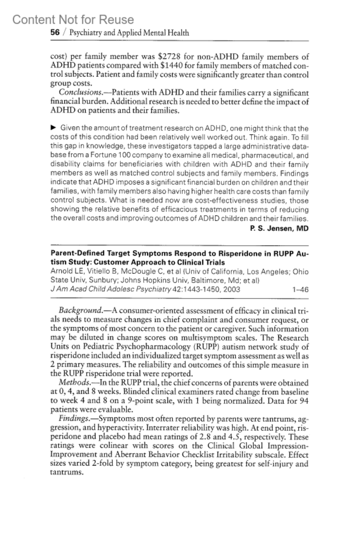 Parent-Defined Target Symptoms Respond to Risperidone in RUPP Autism Study: Customer Approach to Clinical Trials