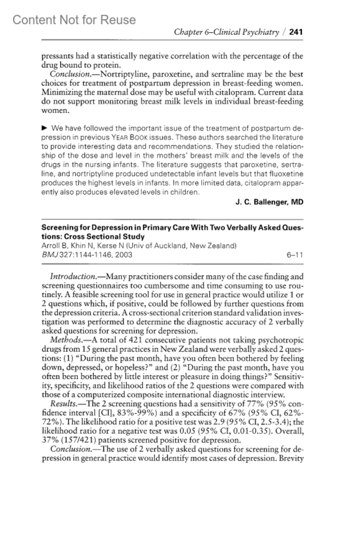 Screening for Depression in Primary Care With Two Verbally Asked Questions: Cross Sectional Study