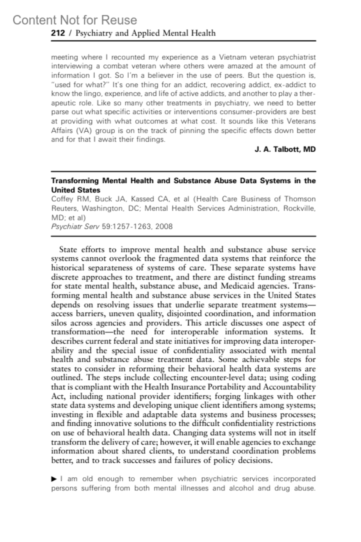 Transforming Mental Health and Substance Abuse Data Systems in the United States