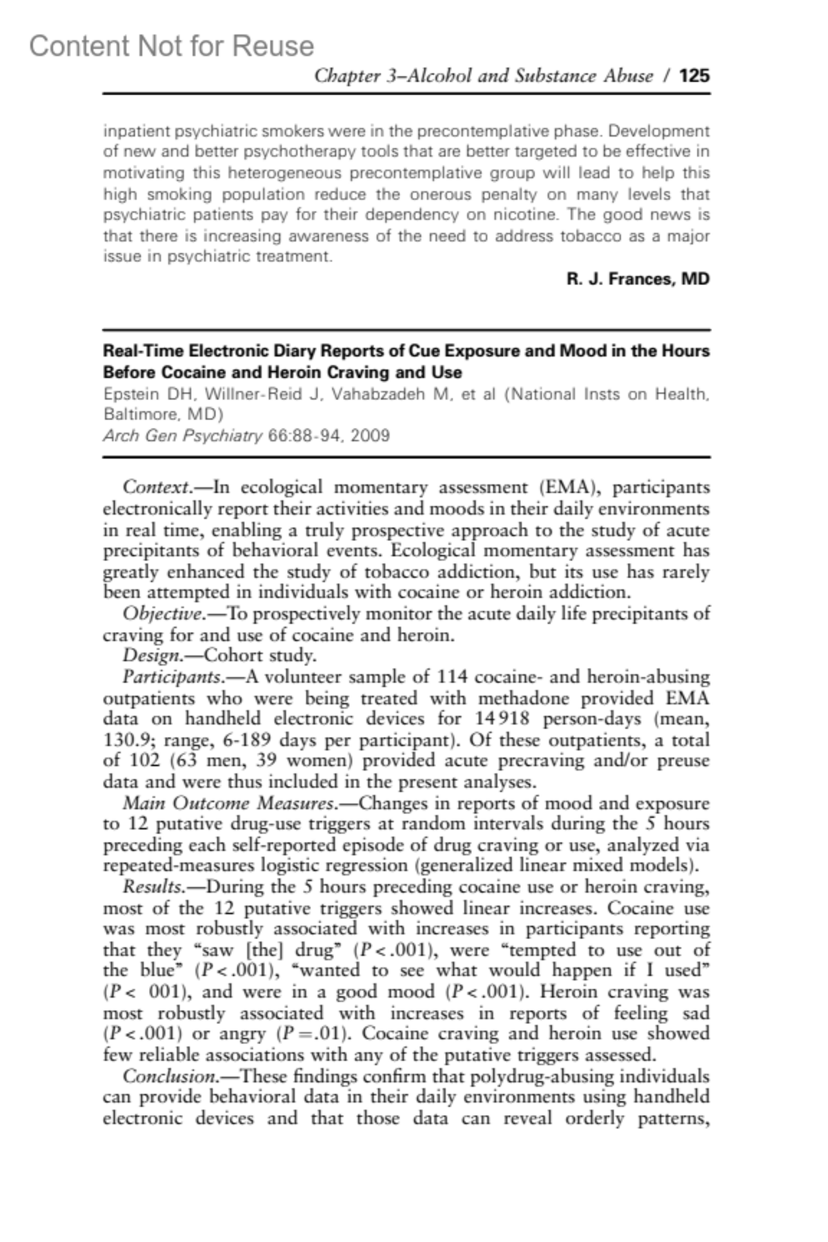 Real-Time Electronic Diary Reports of Cue Exposure and Mood in the Hours Before Cocaine and Heroin Craving and Use