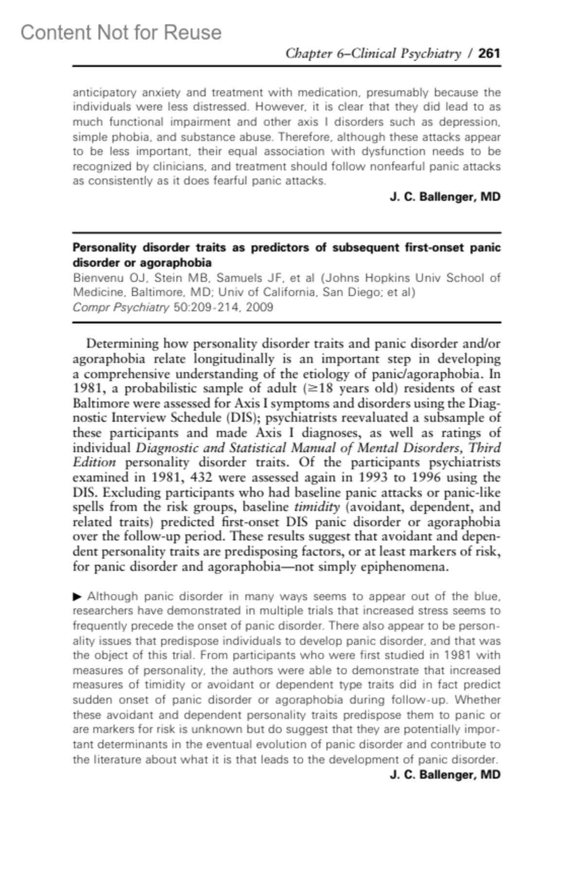 Personality disorder traits as predictors of subsequent first-onset panic disorder or agoraphobiaBallenger, J. C. MDYear Book of Psychiatry & Applied Mental Health :p 261, 2010. | DOI: 10.1016/S0084-3970(09)79127-3Copyright © 2010Elsevier, Inc.