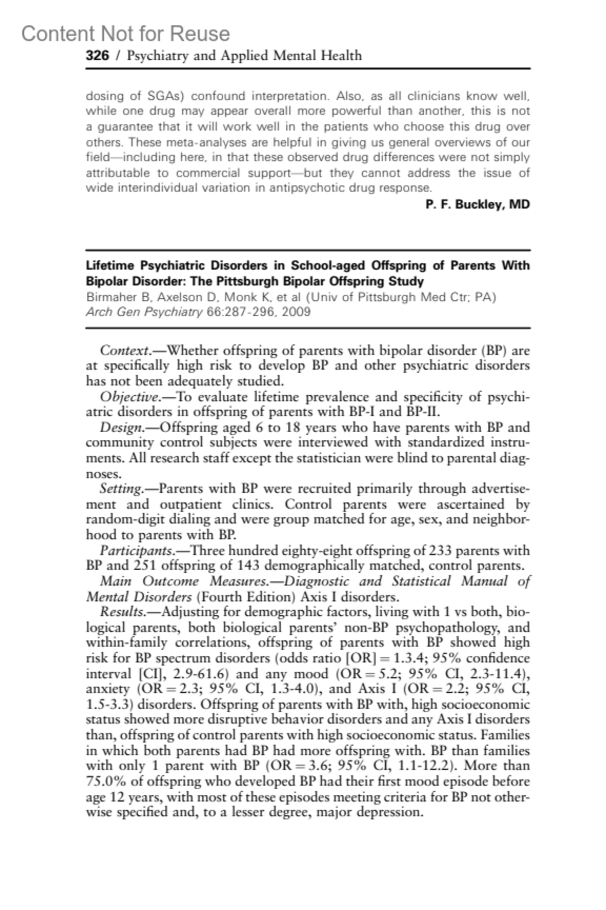 Lifetime Psychiatric Disorders in School-aged Offspring of Parents With Bipolar Disorder: The Pittsburgh Bipolar Offspring Study