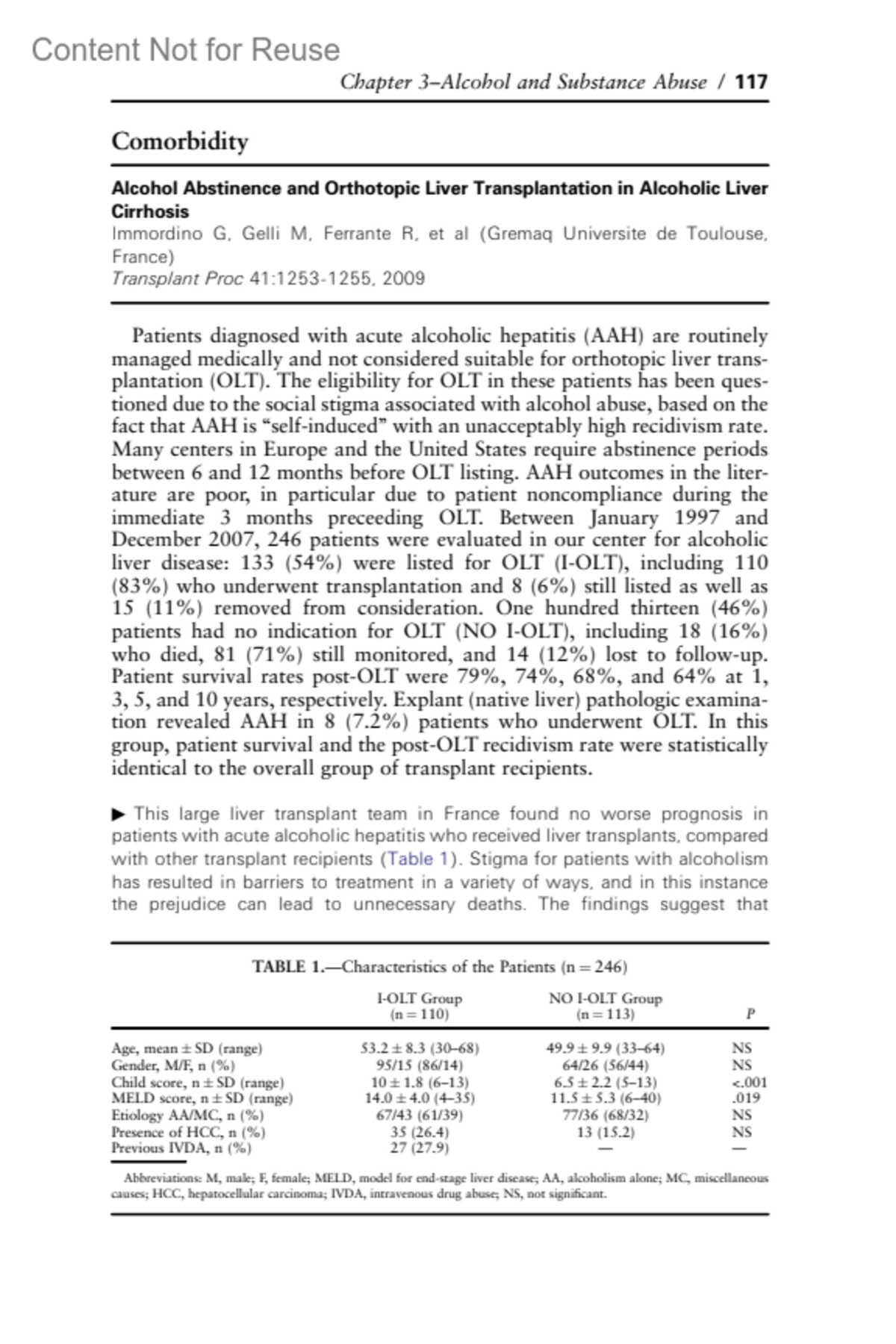 Alcohol Abstinence and Orthotopic Liver Transplantation in Alcoholic Liver Cirrhosis