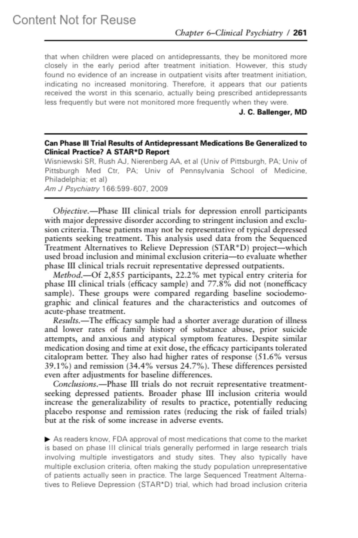 Can Phase III Trial Results of Antidepressant Medications Be Generalized to Clinical Practice? A STAR*D Report