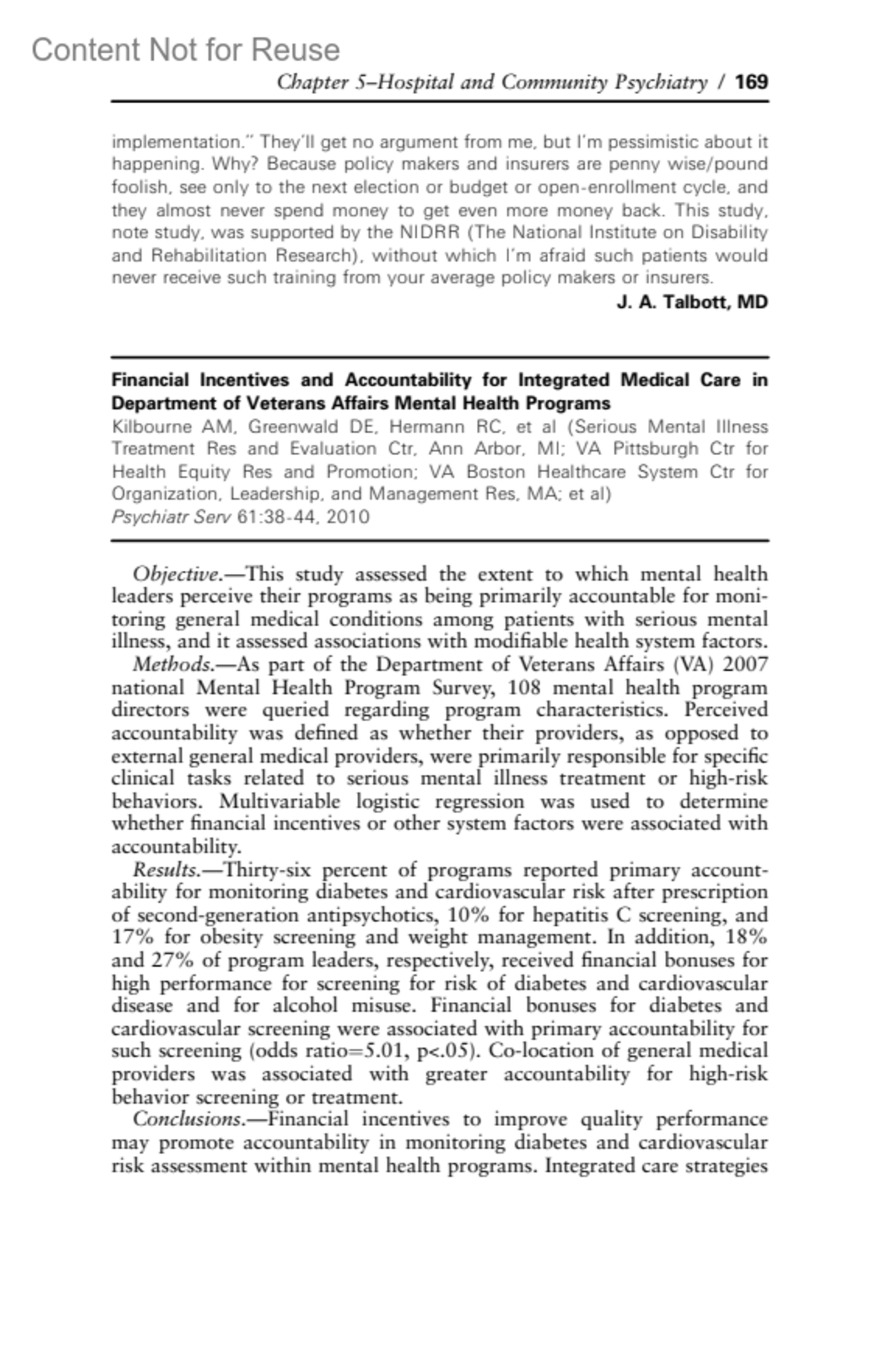 Financial Incentives and Accountability for Integrated Medical Care in Department of Veterans Affairs Mental Health Programs