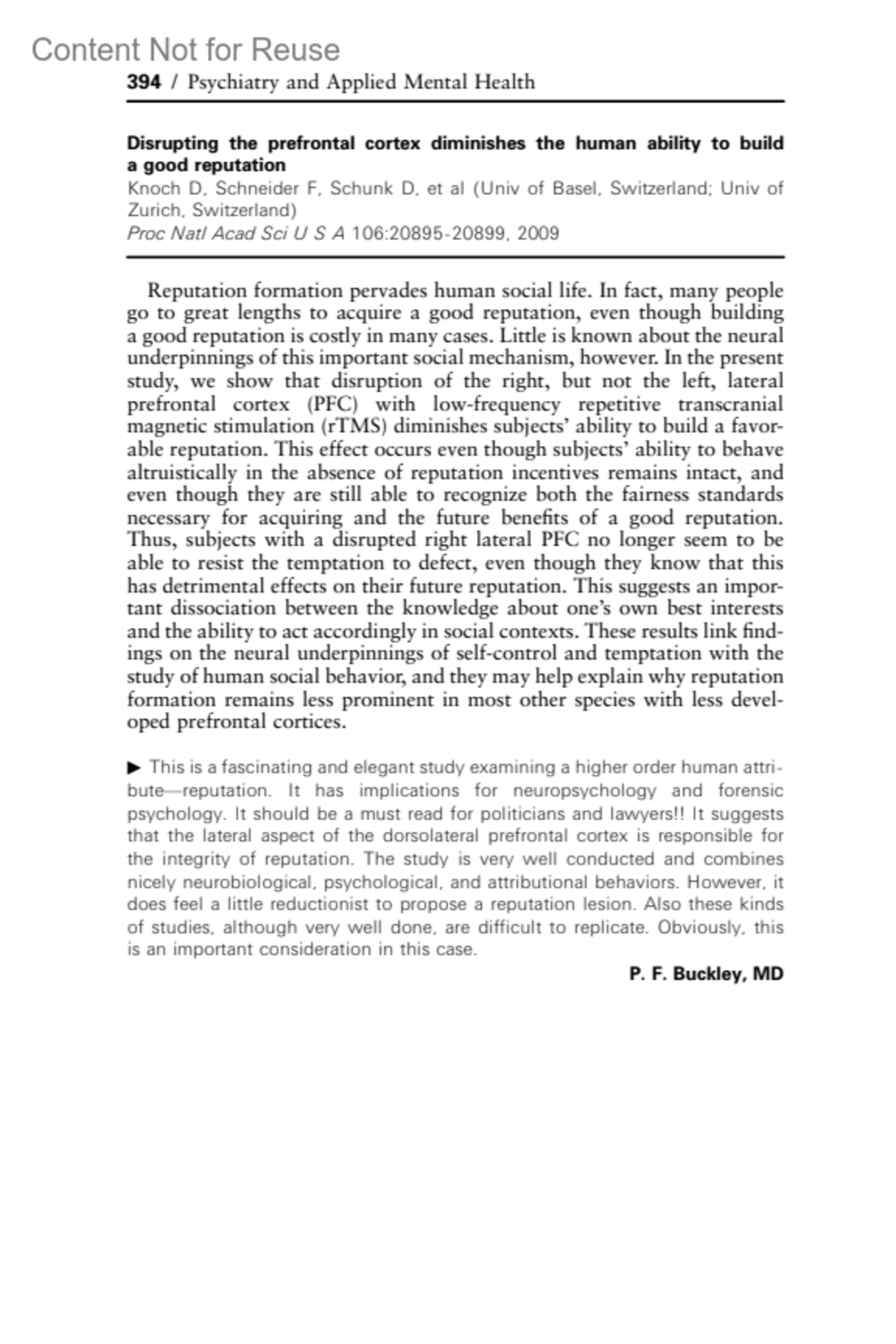 • Buckley, P. F. MD