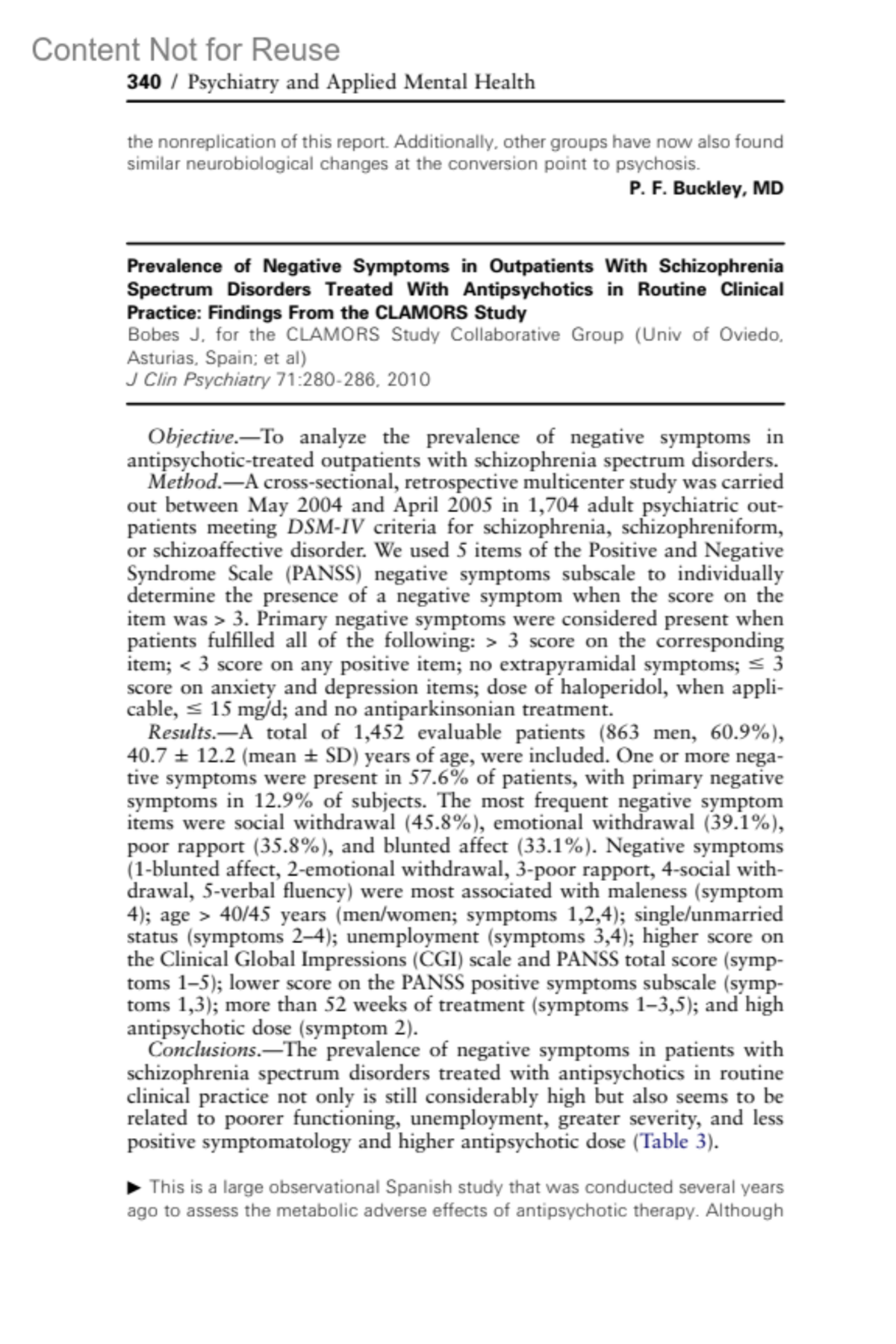 Prevalence of Negative Symptoms in Outpatients With Schizophrenia Spectrum Disorders Treated With Antipsychotics in Routine Clinical Practice