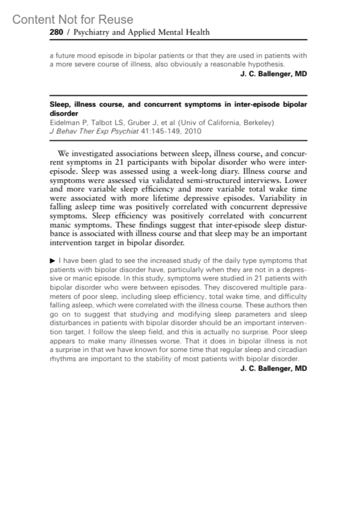 Sleep, illness course, and concurrent symptoms in inter-episode bipolar disorder